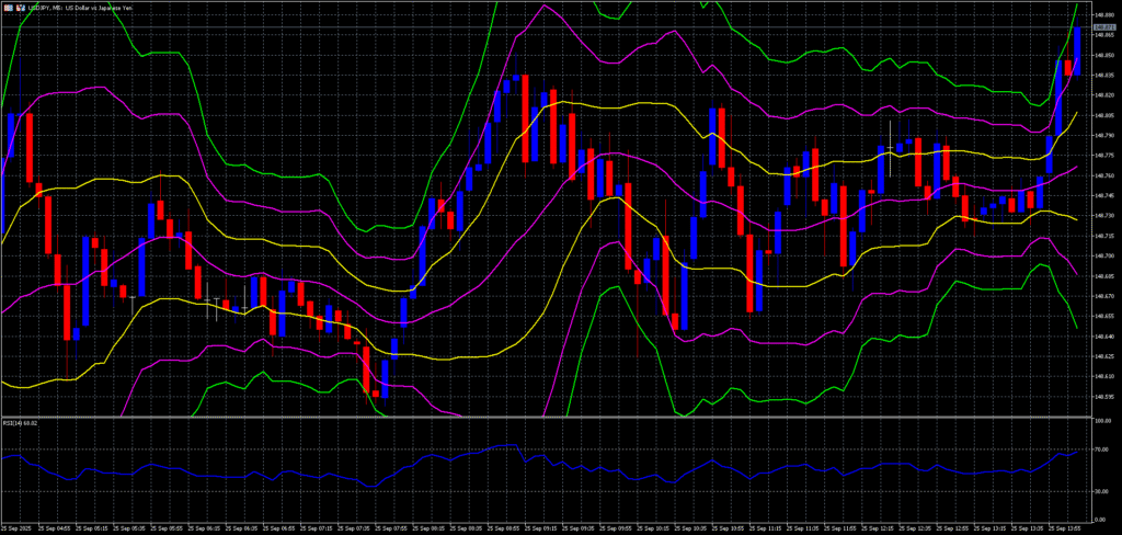 - 1H148.600支え、15Mレンジ上限試し直しのモメンタム継続。