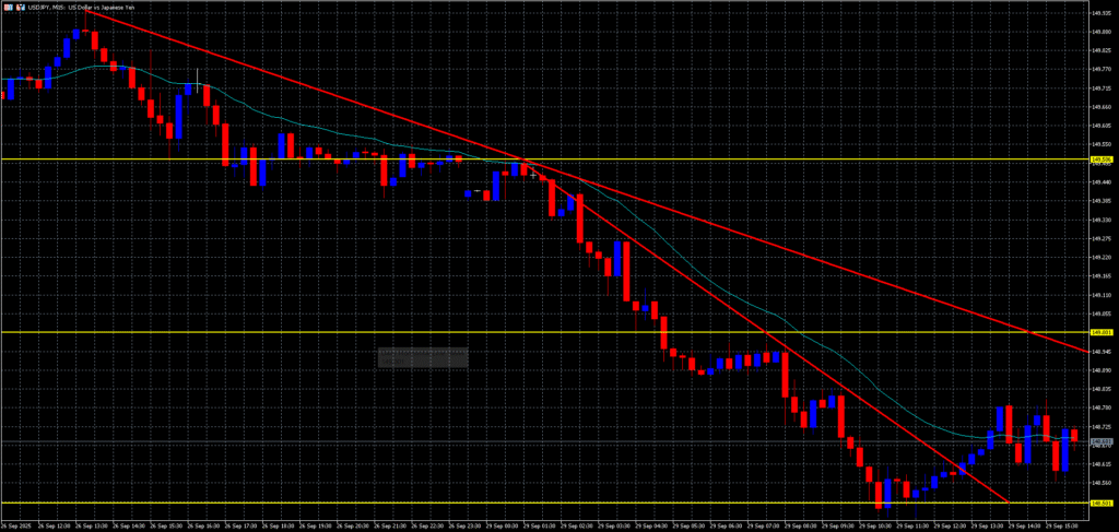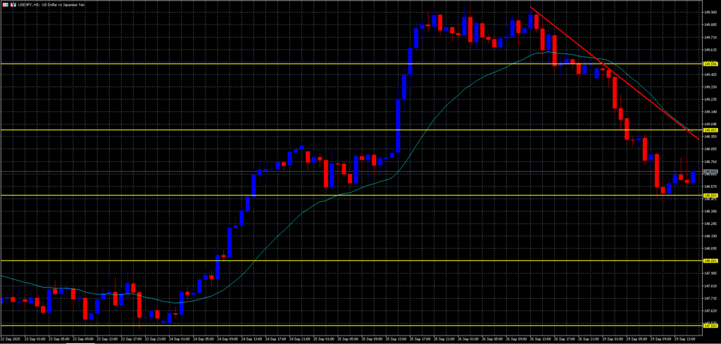 - 直近は148.500のキリ番で支えられ、短期的な戻しを形成。